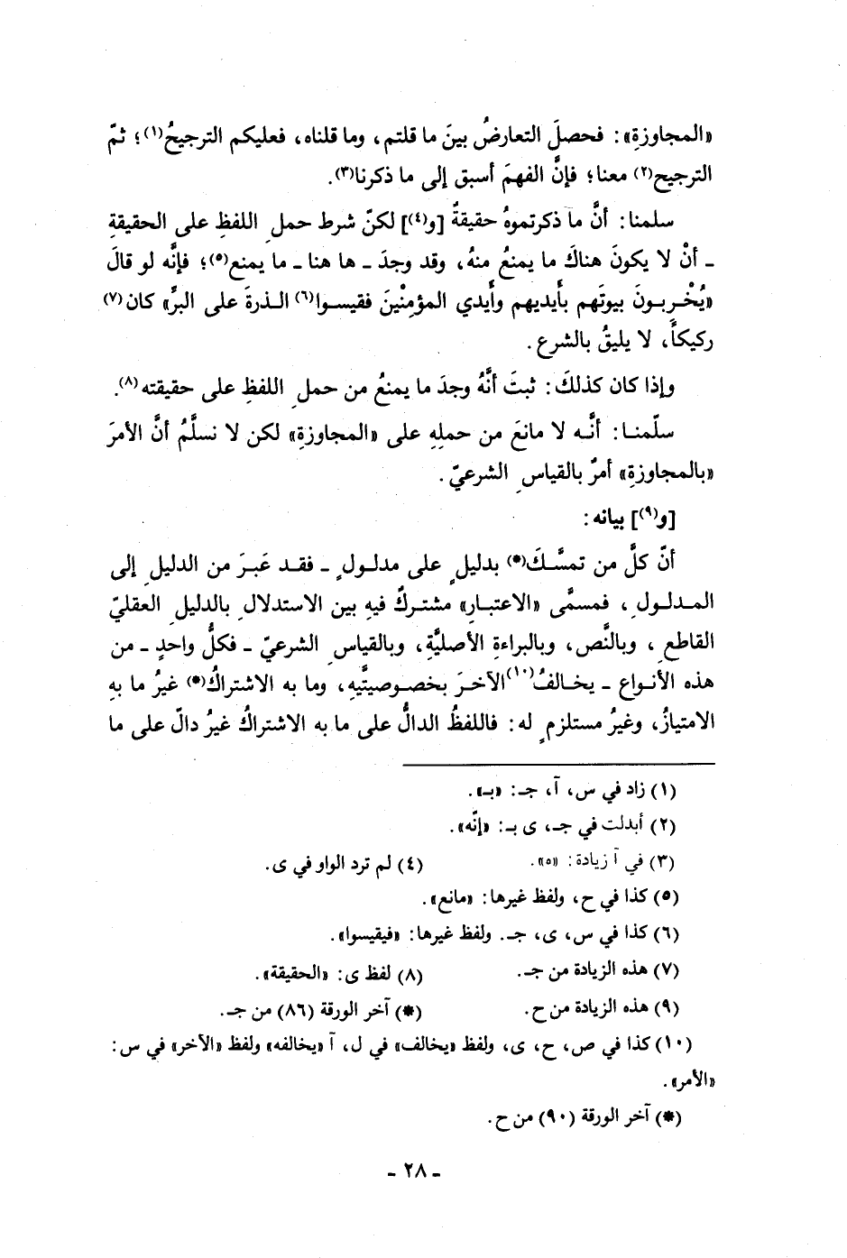 وإذا كان كذلك ثبت أنه وجد ما يمنع من حمل اللفظ على حقيقته سلمنا أنه لا مانع من حمله على المجاوزة لكن لا نسلم أن الأمر بالمجاوزة أمر بالقياس الشرعي وبيانه أن كل من تمسك بدليل على مدلول فقد عبر من الدليل إلى المدلول فمسمى الاعتبار مشترك فيه بين الاستدلال بالدليل العقلى القاطع وبالنص وبالبراءة الأصلية وبالقياس الشرعي فكل واحد من هذه الأنواع يخالف الآخر بخصوصيته وما به الاشتراك غير ما به الامتياز وغير مستلزم له فاللفظ الدال على ما به الاشتراك غير دال على ما