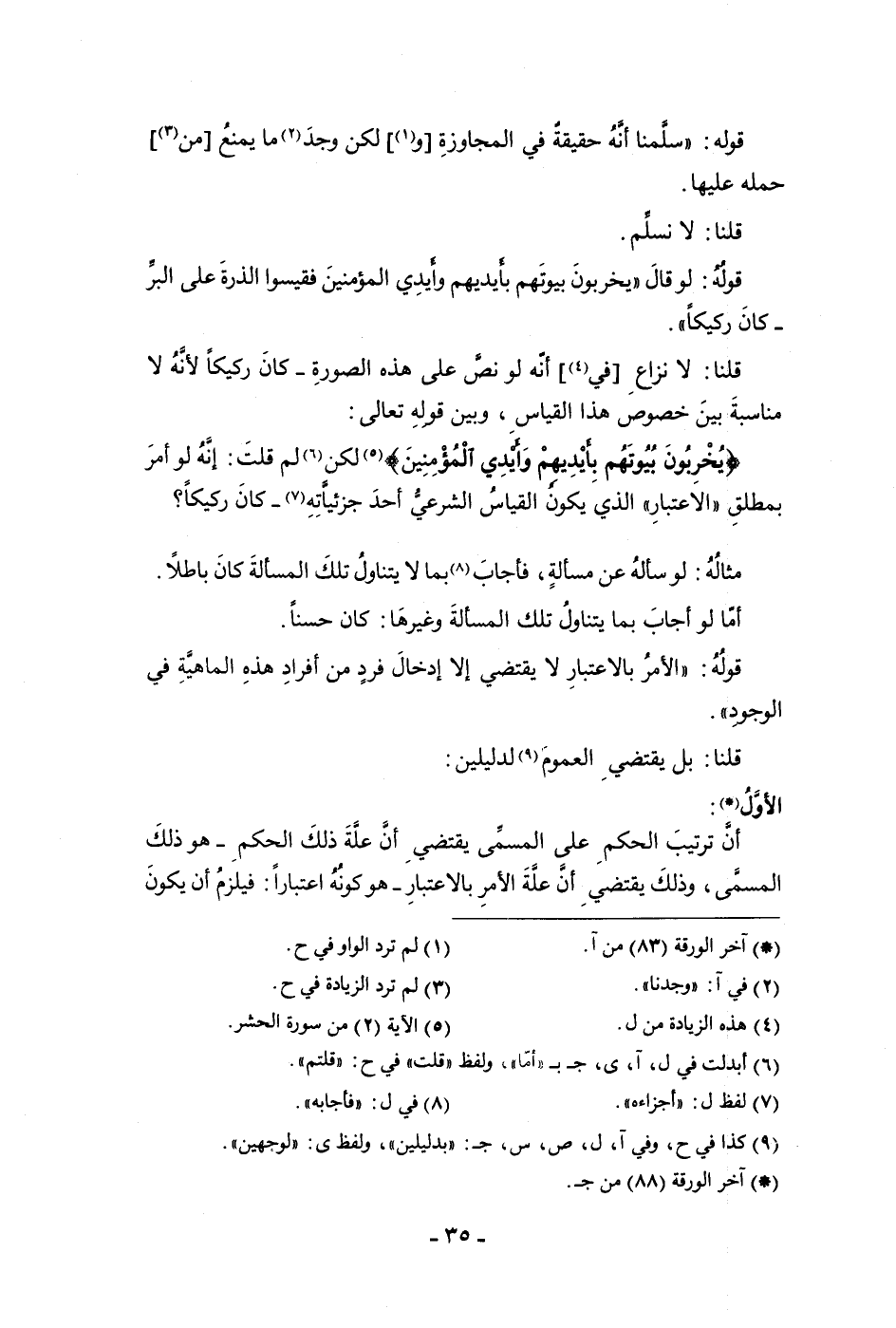 قوله الأمر بالاعتبار لا يقتضى إلا إدخال فرد من أفراد هذه الماهية في الوجود قلنا بل يقتضى العموم لدليلين الأول أن ترتيب الحكم على المسمى يقتضى أن علة ذلك الحكم هو ذلك المسمى وذلك يقتضى أن علة الأمر بالاعتبار هو كونه اعتبارا فيلزم أن يكون