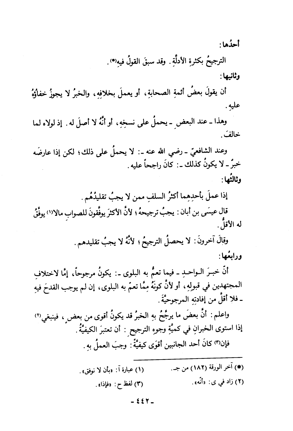 واعلم أن بعض ما يرجح به الخبر قد يكون أقوى من بعض فينبغى إذا استوى الخبران في كمية وجوه الترجيح أن تعتبر الكيفية فإن كان أحد الجانبين أقوى كيفية وجب العمل به
