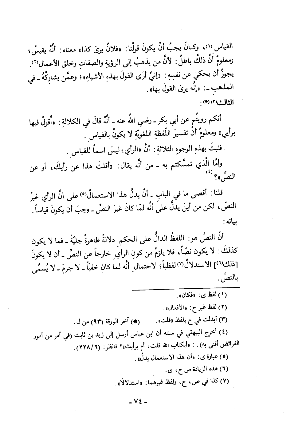 النص قلنا أقصى ما في الباب أن يدل هذا الاستعمال على أن الرأى غير النص لكن من أين يدل على إنه لما كان غير النص وجب أن يكون قياسا بيانه أن النص هو اللفظ الدال على الحكم دلالة ظاهرة جلية فما لا يكون كذلك لا يكون نصا فلا يلزم من كون الرأى خارجا عن النص أن لا يكون ذلك الاستدلال لفظيا لاحتمال إنه لما كان خفيا لا جرم لا يسمى بالنص