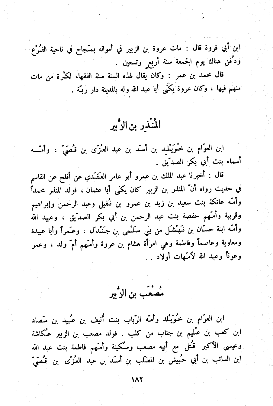 §الْمُنْذِرُ بْنُ الزُّبَيْرِ بْنِ الْعَوَّامِ بْنِ خُوَيْلِدِ بْنِ أَسَدِ بْنِ عَبْدِ الْعُزَّى بْنِ قُصَيٍّ وَأُمُّهُ أَسْمَاءُ بِنْتُ أَبِي بَكْرٍ الصِّدِّيقِ