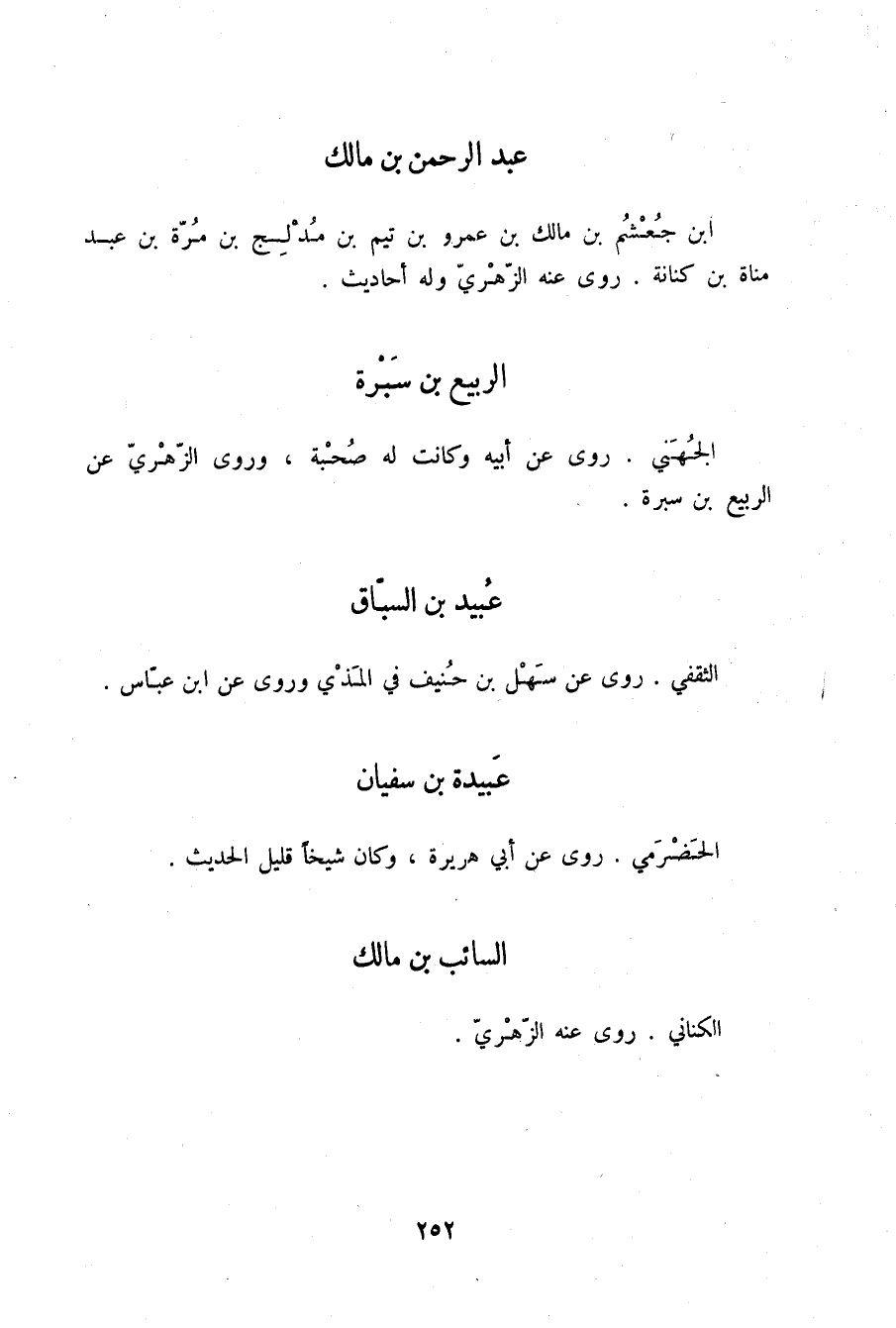 §الرَّبِيعُ بْنُ سَبْرَةَ الْجُهَنِيُّ رَوَى عَنْ أَبِيهِ , وَكَانَتْ لَهُ صُحْبَةٌ , وَرَوَى الزُّهْرِيُّ عَنِ الرَّبِيعِ بْنِ سَبْرَةَ