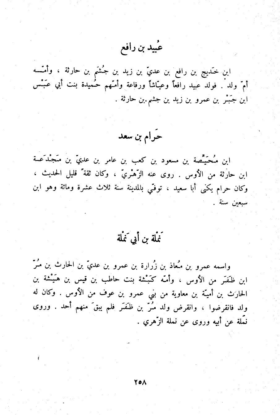 §حَرَامُ بْنُ سَعْدِ بْنِ مُحَيِّصَةَ بْنِ مَسْعُودِ بْنِ كَعْبِ بْنِ عَامِرِ بْنِ عَدِيِّ بْنِ مَجْدَعَةَ بْنِ حَارِثَةَ مِنَ الْأَوْسِ. رَوَى عَنْهُ الزُّهْرِيُّ , وَكَانَ ثِقَةً قَلِيلَ الْحَدِيثِ , وَكَانَ حَرَامٌ يُكْنَى أَبَا سَعِيدٍ , تُوُفِّيَ بِالْمَدِينَةِ سَنَةَ ثَلَاثَ عَشْرَةَ وَمِائَةٍ وَهُوَ ابْنُ سَبْعِينَ سَنَةً