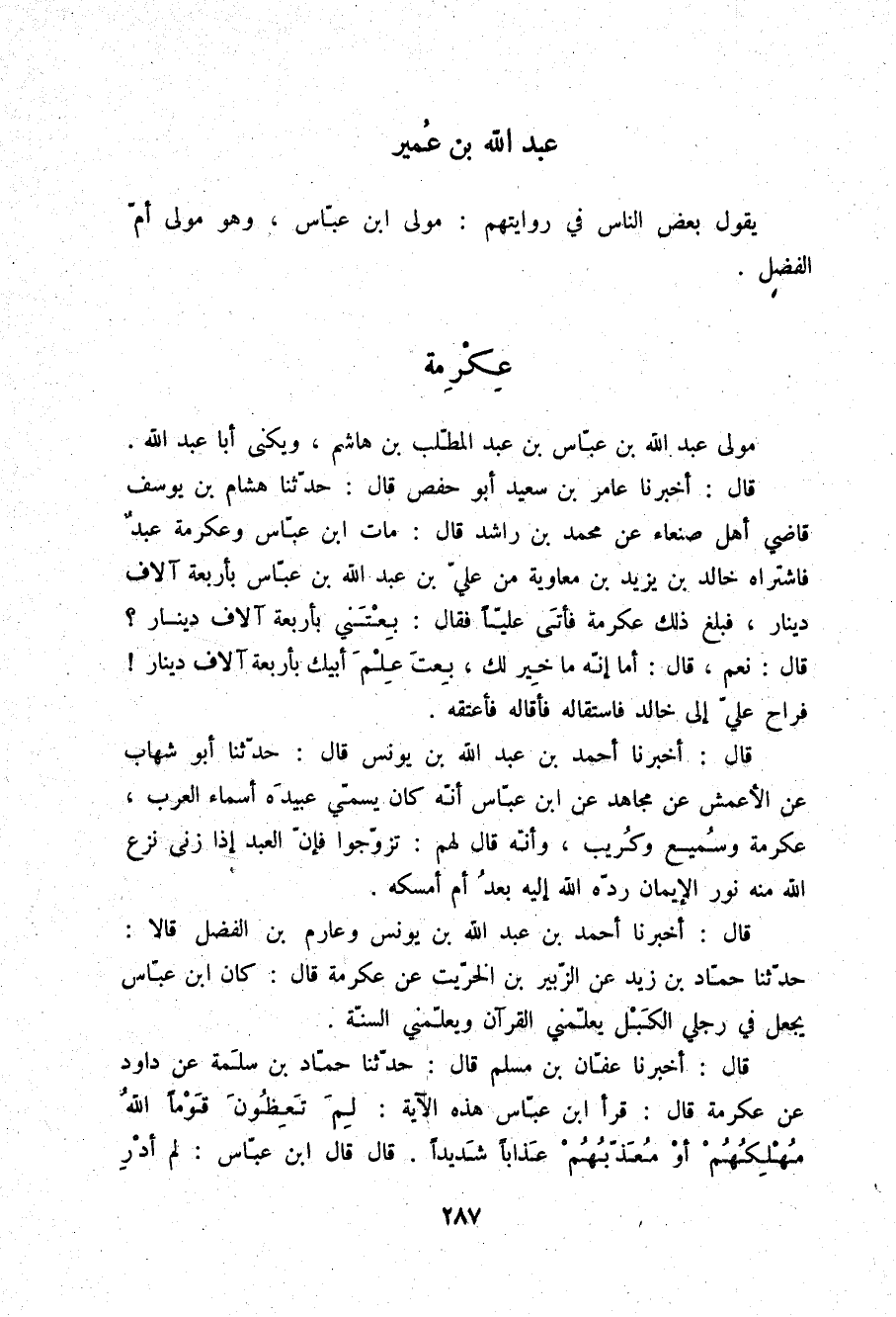 §عِكْرِمَةُ مَوْلَى عَبْدِ اللَّهِ بْنِ عَبَّاسِ بْنِ عَبْدِ الْمُطَّلِبِ بْنِ هَاشِمٍ , وَيُكَنَّى أَبَا عَبْدِ اللَّهِ