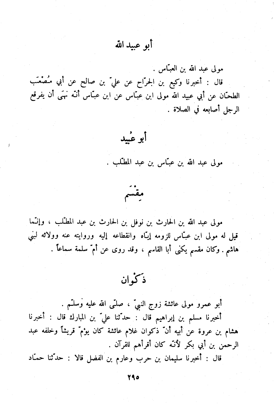 §ذَكْوَانُ أَبُو عَمْرٍو مَوْلَى عَائِشَةَ زَوْجِ النَّبِيِّ صلّى الله عليه وسلم