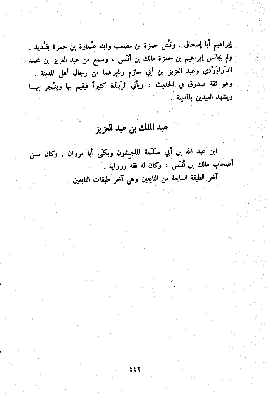 §عَبْدُ الْمَلِكِ بْنُ عَبْدِ الْعَزِيزِ بْنِ عَبْدِ اللَّهِ بْنِ أَبِي سَلَمَةَ الْمَاجِشُونُ , وَيُكَنَّى أَبَا مَرْوَانَ , وَكَانَ مِنْ أَصْحَابِ مَالِكِ بْنِ أَنَسٍ , وَكَانَ لَهُ فِقْهٌ وَرِوَايَةٌ