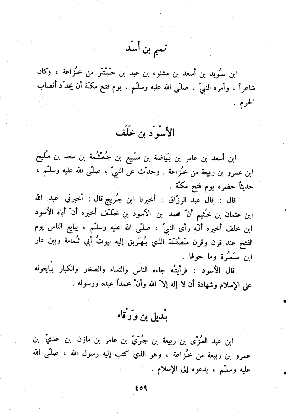 §بُدَيْلُ بْنُ وَرْقَاءَ بْنِ عَبْدِ الْعُزَّى بْنِ رَبِيعَةَ بْنِ جُرَيِّ بْنِ عَامِرِ بْنِ مَازِنِ بْنِ عَدِيِّ بْنِ عَمْرِو بْنِ رَبِيعَةَ مِنْ خُزَاعَةَ، وَهُوَ الَّذِي كَتَبَ إِلَيْهِ رَسُولُ اللهِ صَلَّى اللهُ عَلَيْهِ وَسَلَّمَ يَدْعُوهُ إِلَى الْإِسلَامِ.