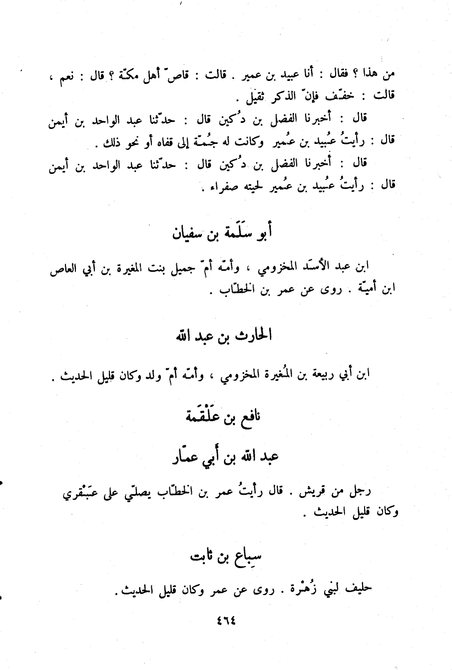 قَالَ: أَخْبَرَنَا الْفَضْلُ بْنُ دُكَيْنٍ، قَالَ: حَدَّثَنَا عَبْدُ الْوَاحِدِ بْنُ أَيْمَنَ، قَالَ: «§رَأَيْتُ عُبَيْدَ بْنَ عُمَيْرٍ لِحْيَتُهُ صَفْرَاءُ»