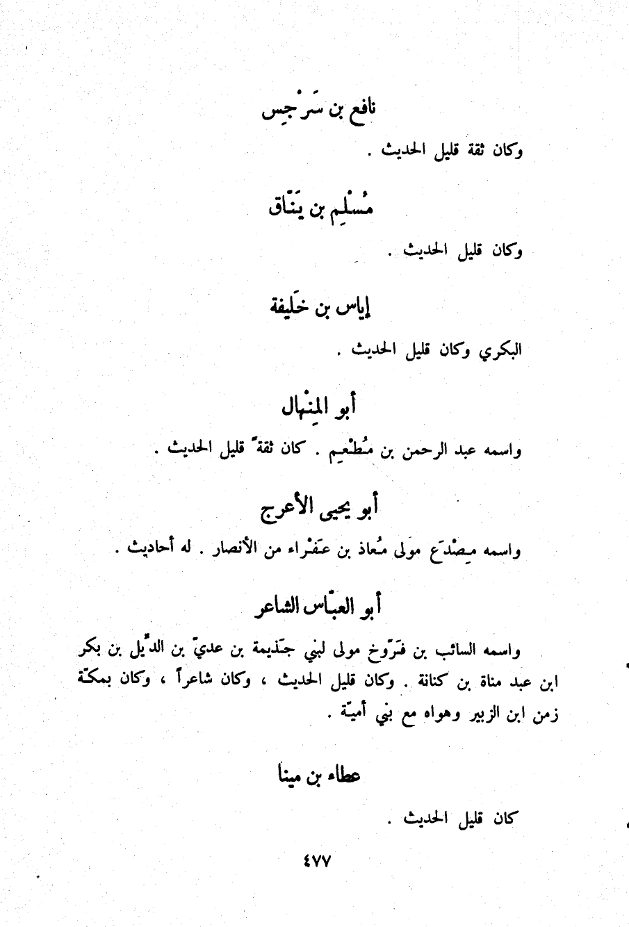 §نَافِعُ بْنُ سَرْجِسٍ وَكَانَ ثِقَةً قَلِيلَ الْحَدِيثِ