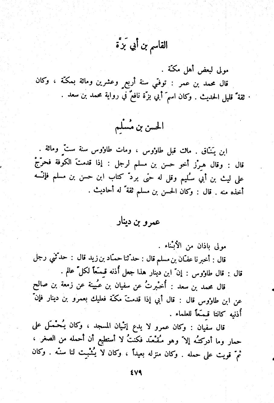 §الْحَسَنُ بْنُ مُسْلِمِ بْنِ يَنَّاقَ مَاتَ قَبْلَ طَاوُسٍ وَمَاتَ طَاوُسٌ سَنَةَ سِتٍّ وَمِائَةٍ قَالَ: وَقَالَ هِرْزٌ أَخُو حَسَنِ بْنِ مُسْلِمٍ لِرَجُلٍ إِذَا قَدِمْتُ الْكُوفَةَ فَحَرِّجْ عَلَى لَيْثِ بْنِ أَبِي سُلَيْمٍ وَقُلْ لَهُ حَتَّى يَرُدَّ كِتَابَ ابْنِ حَسَنِ بْنِ مُسْلِمٍ فَإِنَّهُ أَخَذَهُ مِنْهُ. قَالَ: وَكَانَ الْحَسَنُ بْنُ مُسْلِمٍ ثِقَةً لَهُ أَحَادِيثُ