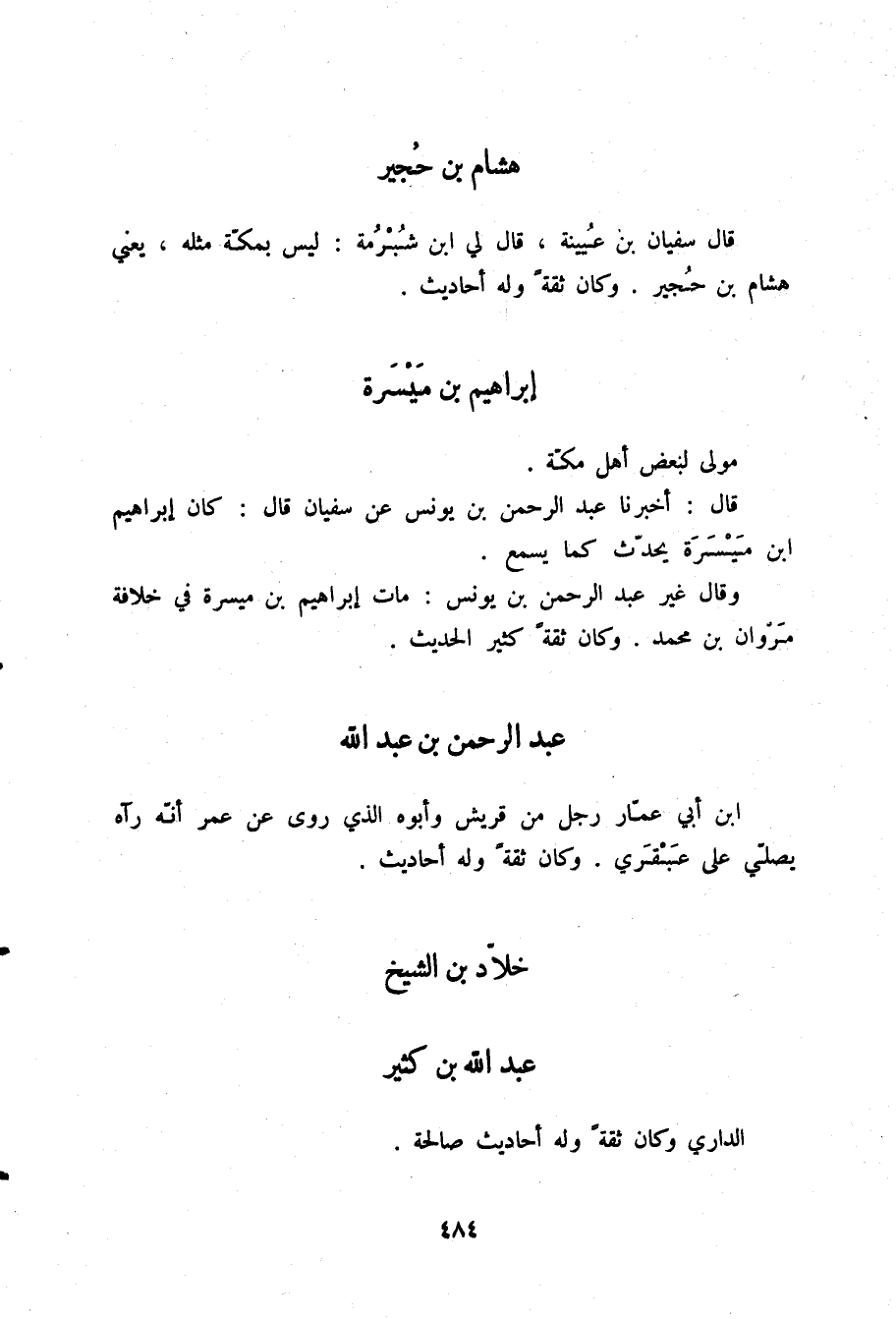 §هِشَامُ بْنُ حُجَيْرٍ قَالَ سُفْيَانُ بْنُ عُيَيْنَةَ: قَالَ لِي ابْنُ شُبْرُمَةَ: لَيْسَ بِمَكَّةَ مِثْلُهُ، يَعْنِي هِشَامَ بْنَ حُجَيْرٍ وَكَانَ ثِقَةً وَلَهُ أَحَادِيثُ