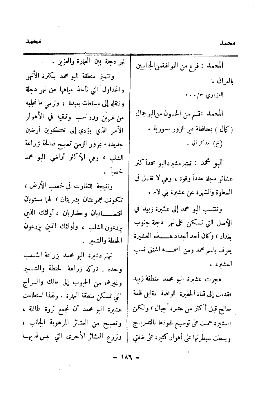تعتبر عشيرة البو محمد أكثر عشائر دجلة عددا وقوة، وهي لا تقل في السطوة والشهرة عن عشيرة بني لام.