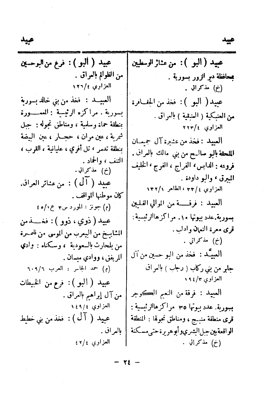 فخذ من بني خالد بسورية بسورية. مراكزه الرئيسية: المعمورة بمنطقة حماة وسلمية، ومناطق تجوله: جبل شمرية، عين مران، حجار، عين البيضة بمنطقة تدمر، تل أفري، عليانية، القرب، التنف، والحماد.