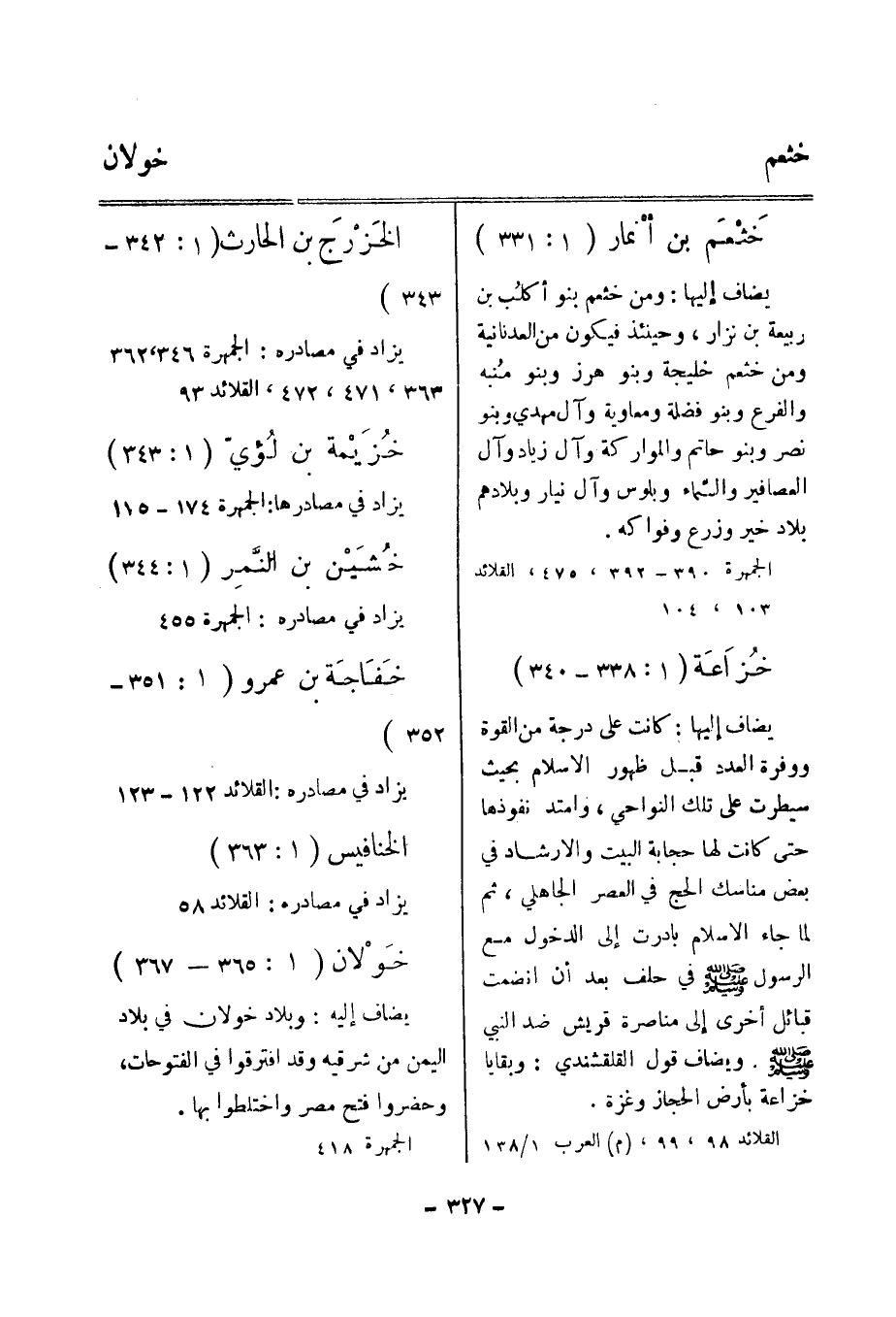 (1: 342- 343) يزاد في مصادره: الجمهرة 346، 362 363، 471، 472، القلائد 93