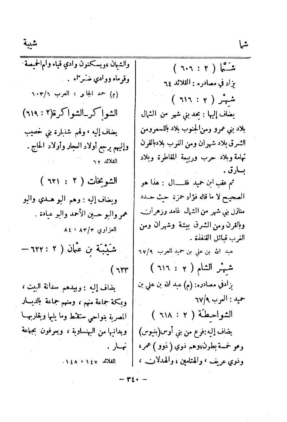 (2: 616) يزاد في مصادره: (م) عبد الله بن علي بن حميد: العرب 9/ 67