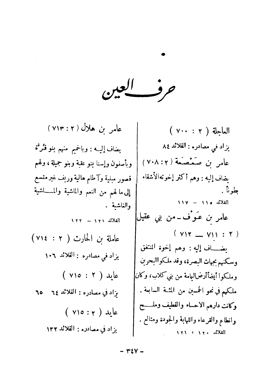 (2: 711- 712) يضاف إليه: وهم إخوة المنتفق وسكنهم بجهات البصرة، وقد ملكوا البحرين وملكوا أيضا أرض اليمامة من بني كلاب، وكان ملكهم في نحو الخمسين من المئة السابعة.
