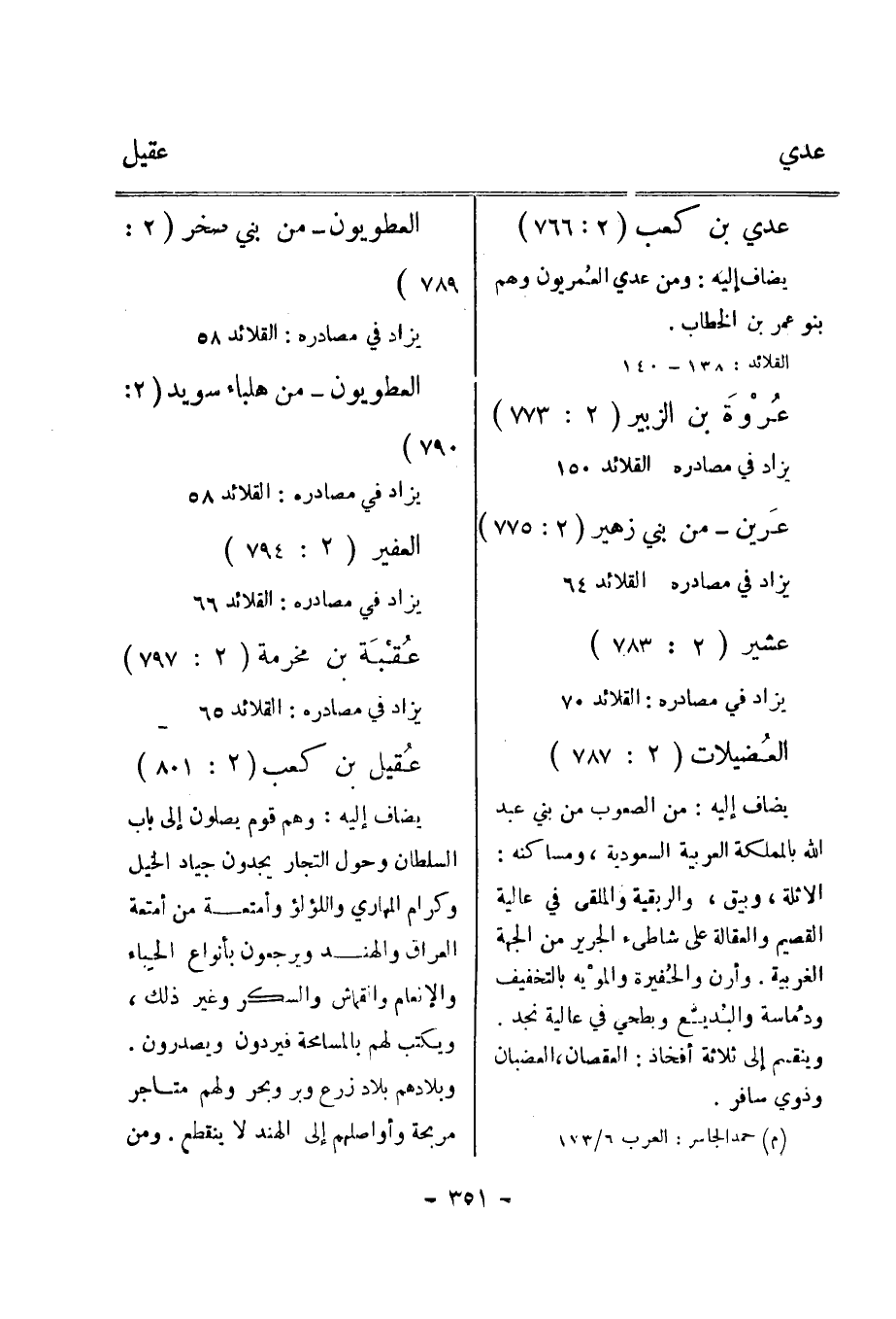 (2: 766) يضاف إليه: ومن عدي العمريون وهم بنو عمر بن الخطاب.