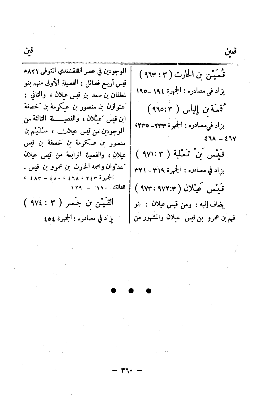 (3: 972، 973) يضاف إليه: ومن قيس عيلان: بنو فهم بن عمرو بن قيس عيلان والمشهور من الموجودين في عصر القلقشندي المتوفى 821 هـ: