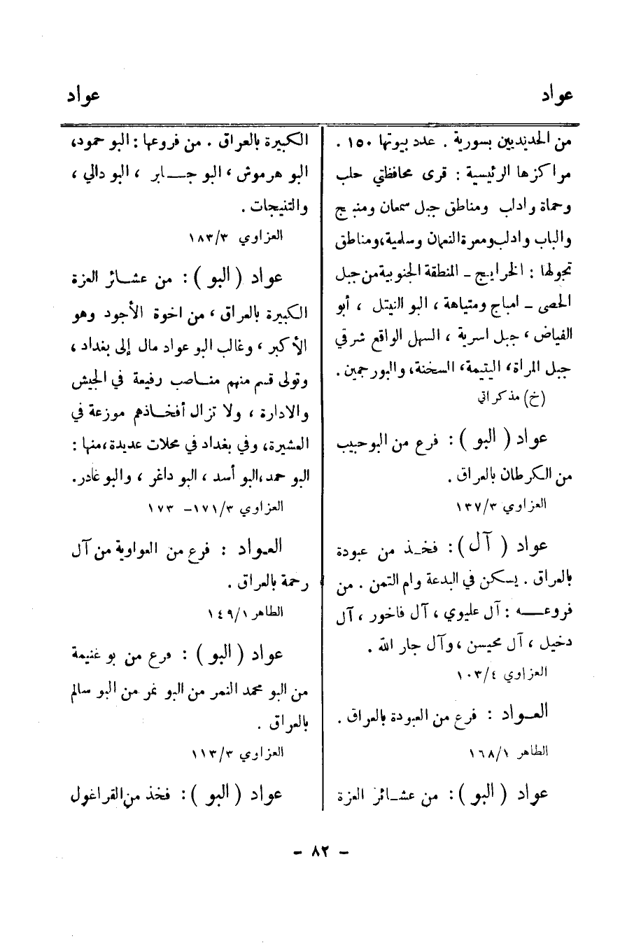 من عشائر العزة الكبيرة بالعراق، من اخوة الأجود وهو الأكبر، وغالب البو عواد مال إلى بغداد، وتولى قسم منهم مناصب رفيعة في الجيش والادارة، ولا تزال أفخاذهم موزعة في العشيرة، وفي بغداد في محلات عديدة، منها: