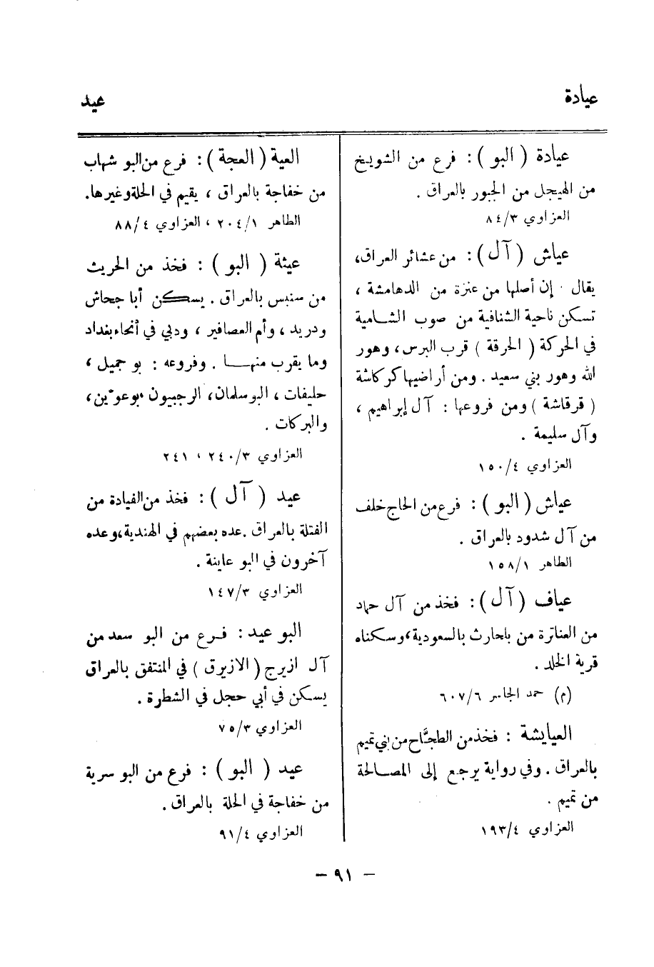 من عشائر العراق، يقال: إن أصلها من عنزة من الدهامشة، تسكن ناحية الشنافية من صوب الشامية في الحركة (الحرقة) قرب البرس، وهور الله وهور بني سعيد. ومن أراضيها كركاشة (قرقاشة) ومن فروعها: آل إبراهيم، وآل سليمة.