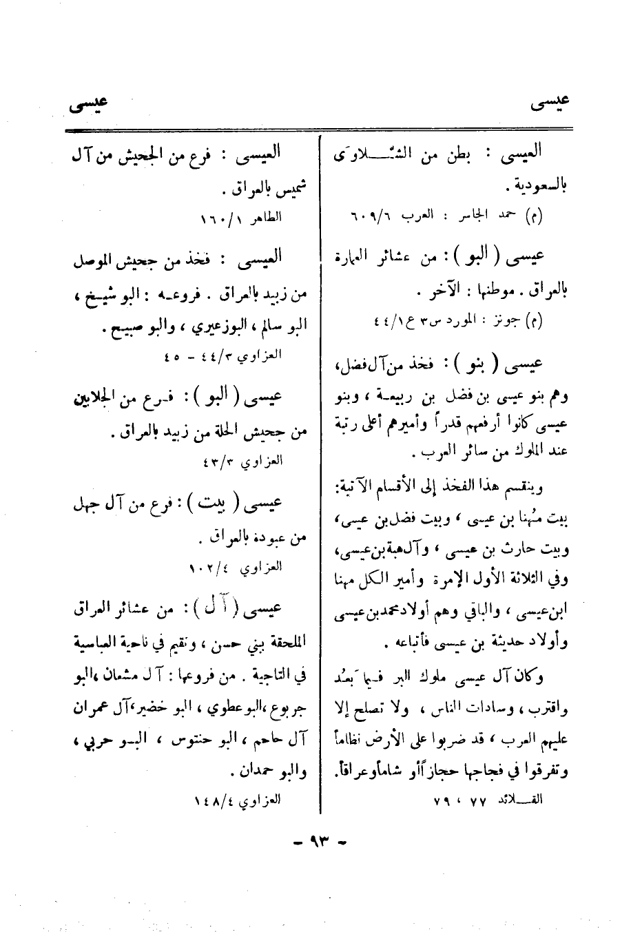 فخذ من آل فضل، وهم بنو عيسى بن فضل بن ربيعة، وبنو عيسى كانوا أرفعهم قدرا وأميرهم أعلى رتبة عند الملوك من سائر العرب.