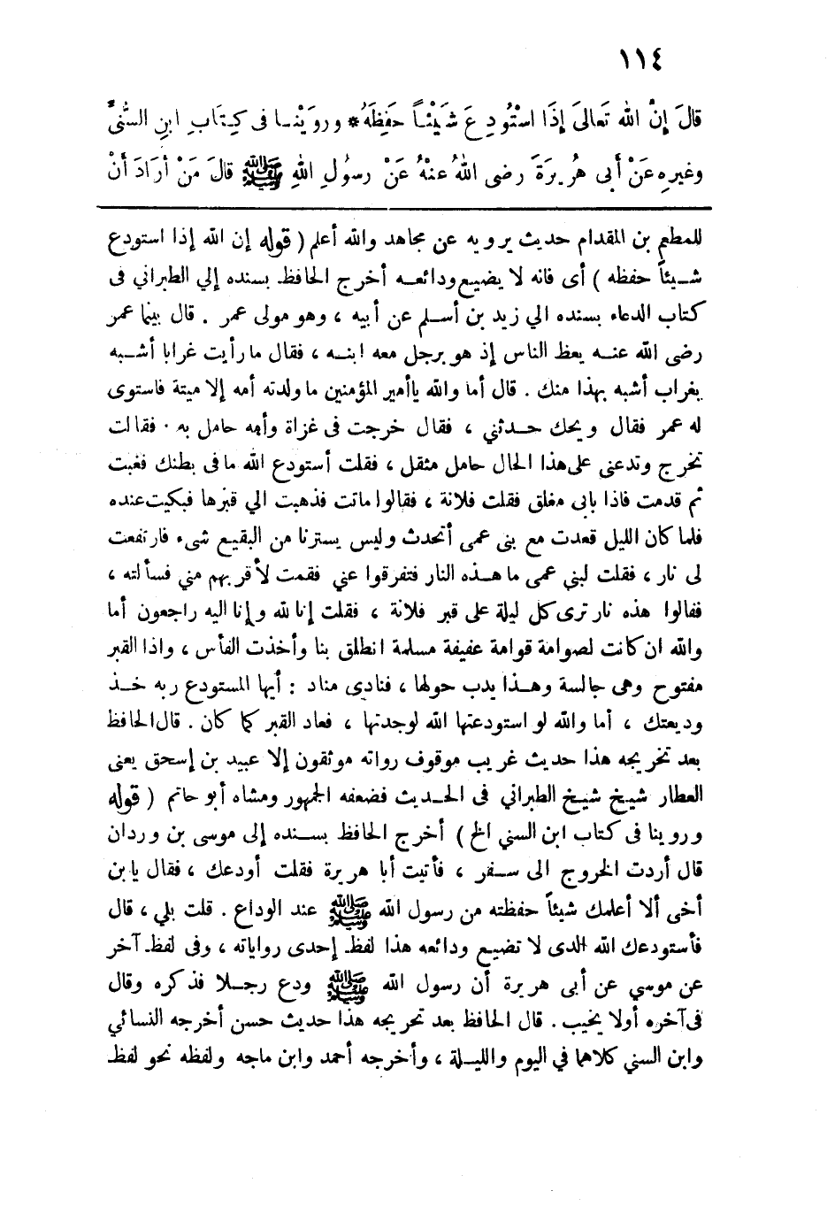 قال: "إن اللهَ تعالى إذا اسْتَودع شَيئًا حَفِظَهُ".