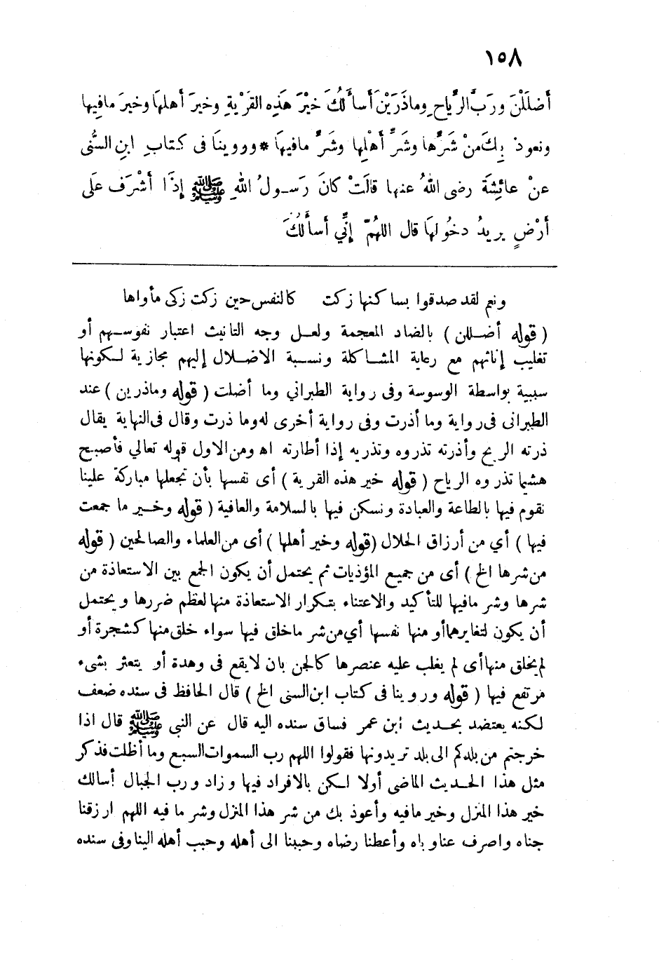 أضْلَلْنَ، وَرَب الرياح وما ذَرَيَنِ، أسألُكَ خَيرَ هَذِهِ القَرْيَةَ وخَيرَ أهْلِها وخَيرَ ما فيها، ونَعُوذُ بِكَ مِنْ شَرّها وشَرِّ أهْلِها وَشَرّ ما فِيها".