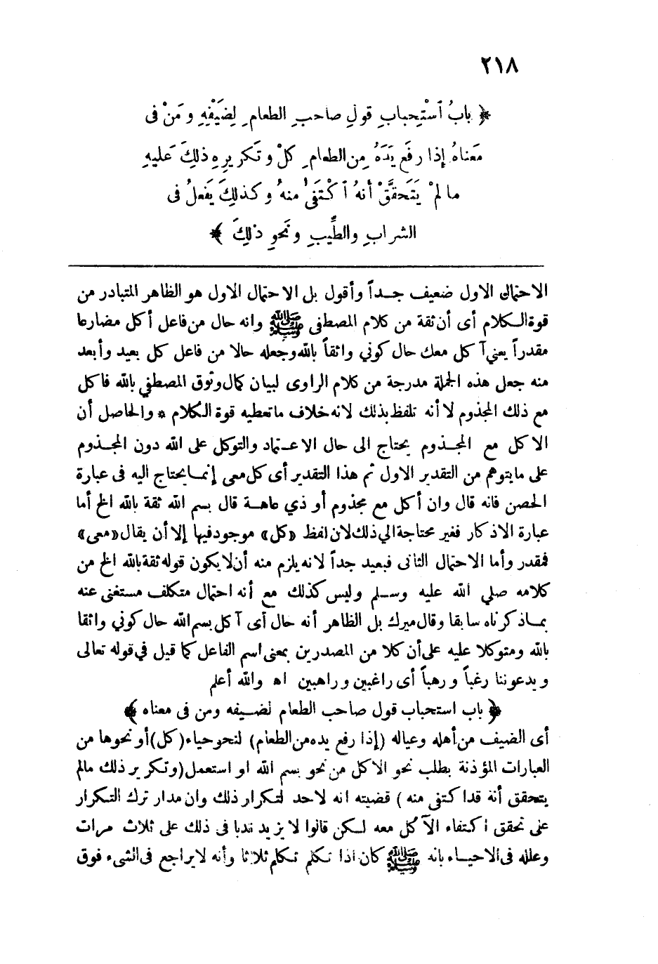 الاحتمال الأول ضعيف جدًّا وأقول بل الاحتمال الأول هو الظاهر المتبادر من قوة الكلام أي أن ثقة من كلام المصطفى - صلى الله عليه وسلم - وأنه حال من فاعل أكل مضارعًا مقدرا يعني آكل معك حال كوني واثقًا بالله وجعله حالًا من فاعل كل بعيد وأبعد منه جعل هذه الجملة مدرجة من كلام الراوي لبيان كمال وثوق المصطفى بالله فأكل مع ذلك المجذوم لا أنه تلفظ بذلك لأنه خلاف ما تعطيه قوة الكلام.