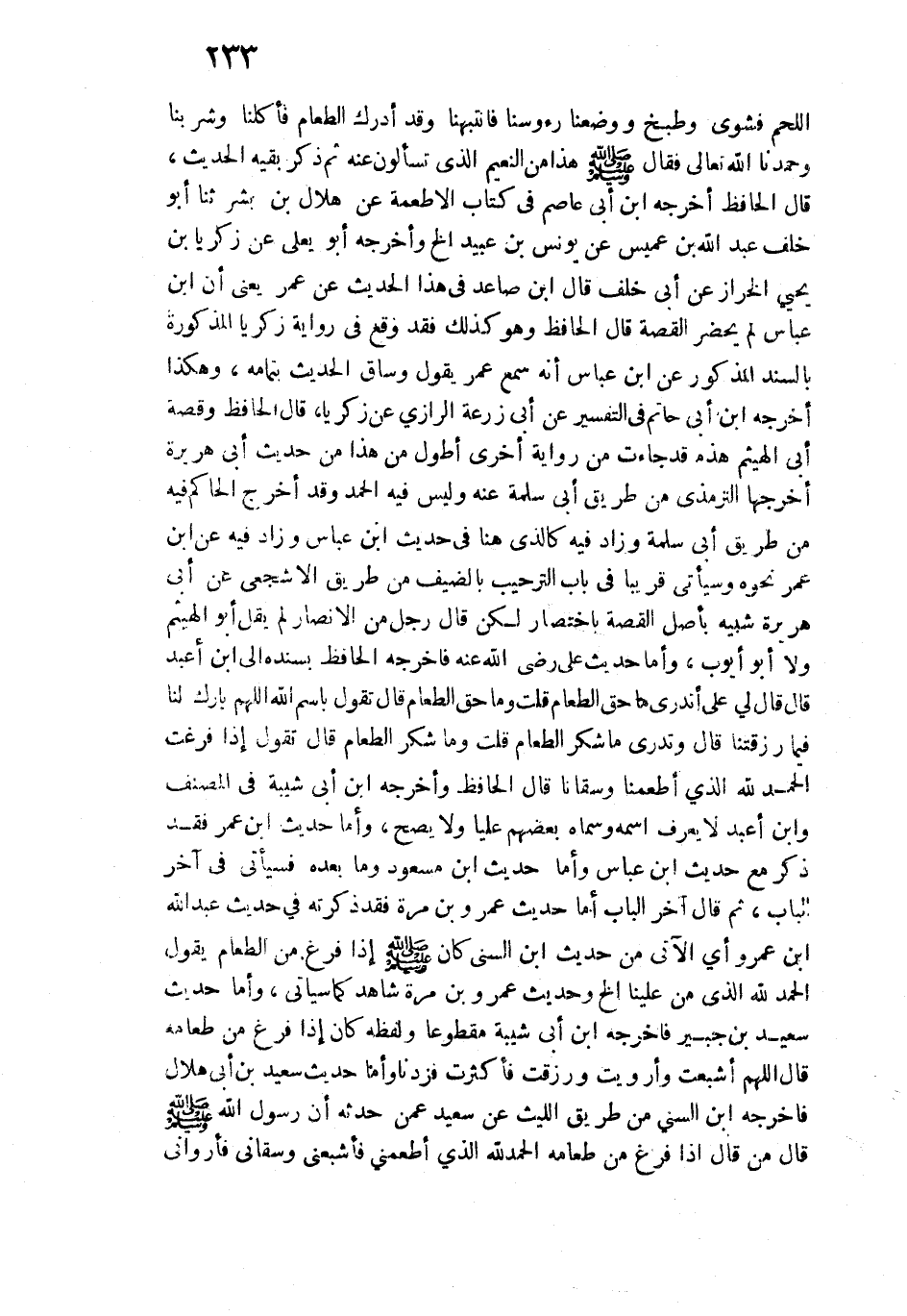 الأنصار: لم يقل أبو الهيثم ولا أبو أيوب، وأما حديث علي رضي الله عنه فأخرجه الحافظ بسنده إلى ابن أعبد قال: قال لي علي: أتدري ما حق الطعام؟ قلت: وما حق الطعام؟ قال: تقول بسم الله اللهم بارك لنا فيما رزقتنا قال: وتدري ما شكر الطعام قلت: وما شكر الطعام؟ قال: تقول إذا فرغت: الحمد الله الذي أطعمنا وسقانا قال الحافظ: وأخرجه ابن أبي شيبة في المصنف وابن أعبد لا يعرف اسمه وسماه بعضهم عليًّا ولا يصح، وأما حديث ابن عمر فقد ذكر مع حديث ابن عباس وأما حديث ابن مسعود وما بعده فسيأتي في آخر الباب، ثم قال: آخر الباب أما حديث عمرو بن مرة فقد ذكرته في حديث عبد الله بن عمرو أي الآتي من حديث ابن السني كان - صلى الله عليه وسلم - إذا فرغ من الطعام يقول: الحمد الله الذي منَّ علينا الخ وحديث عمرو بن مرة شاهد كما سيأتي، وأما حديث سعيد بن جبير فأخرجه ابن أبي شيبة مقطوعًا ولفظه كان إذا فرغ من طعامه قال: اللهم أشبعت وأرويت ورزقت فأكثرت فزدنا وأما حديث سعيد بن أبي هلال فأخرجه ابن السني من طريق الليث عن سعيد عمن حدثه أن رسول الله - صلى الله عليه وسلم - قال: من قال إذا فرغ من طعامه الحمد الله الذي أطعمني فأشبعني وسقاني فأرواني