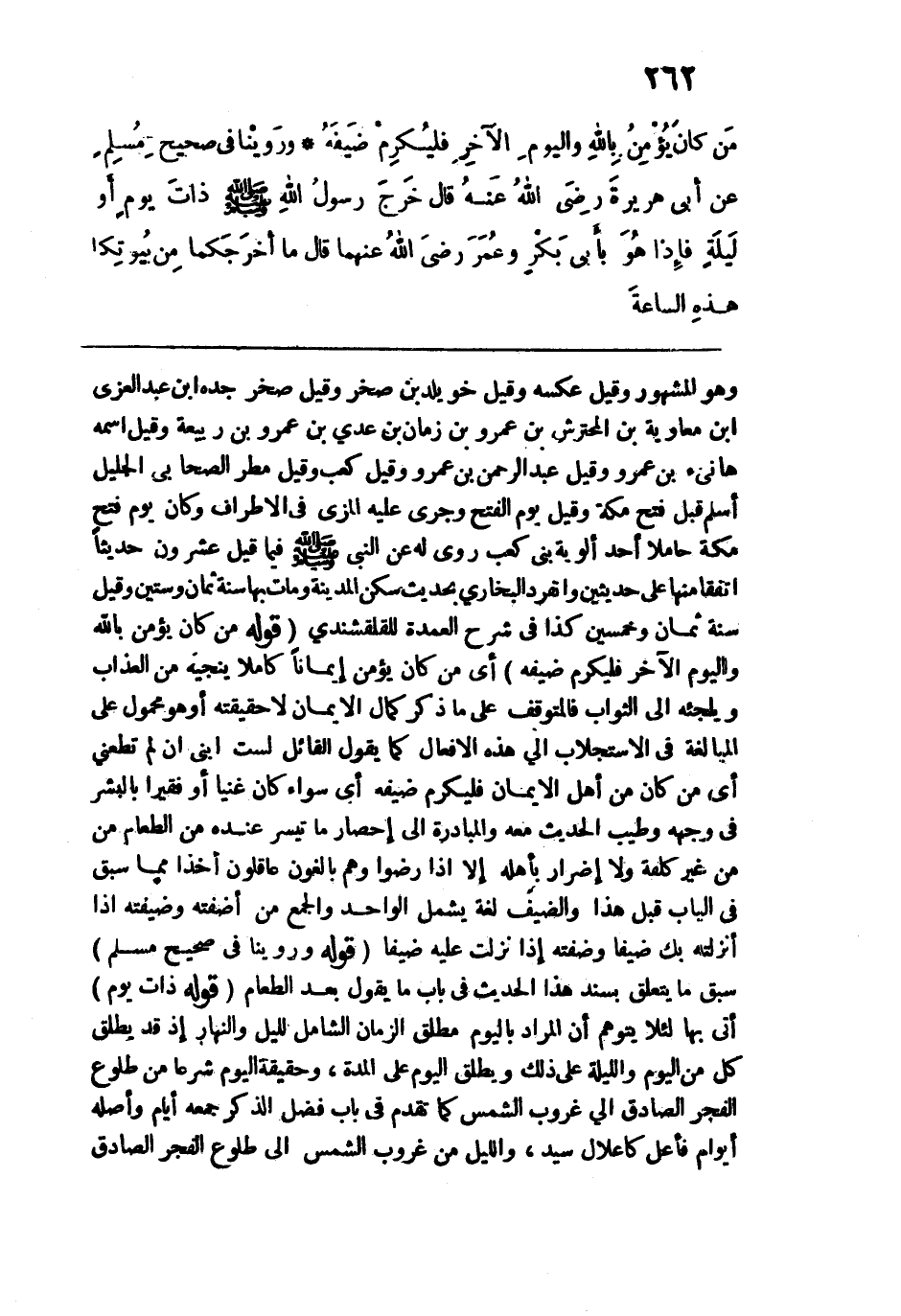 "مَنْ كانَ يُؤمِنُ باللهِ وَاليَوْمِ الآخِرِ فَلْيُكْرِمْ ضَيفَهُ".