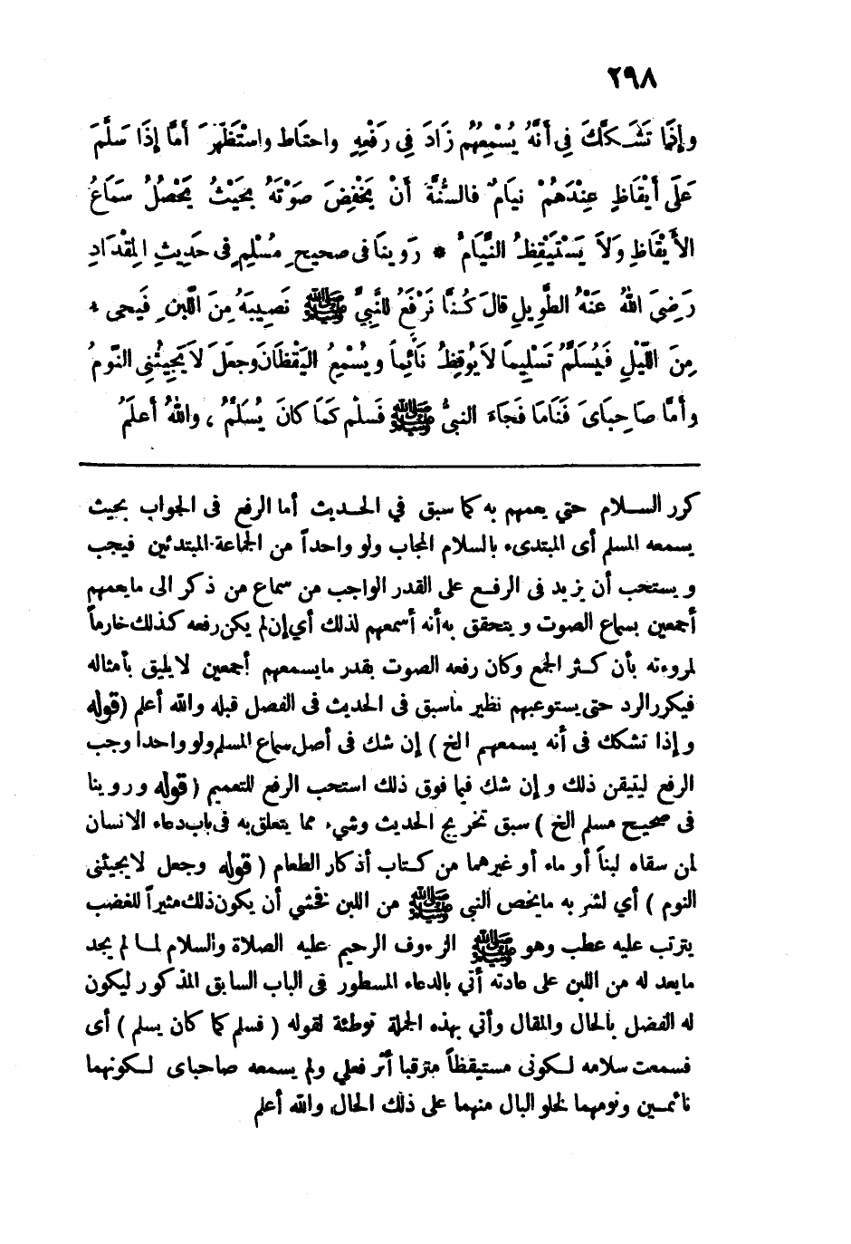 وإذا تشكك في أنه يسمعهم، زاد في رفعه، واحتاط واستظهر، أما إذا سلَّم على أيقاظ عندهم نيام، فالسُّنَّة أن يخفض صوته بحيث يحصل سماع الأيقاظ ولا يستيقظ النيام.