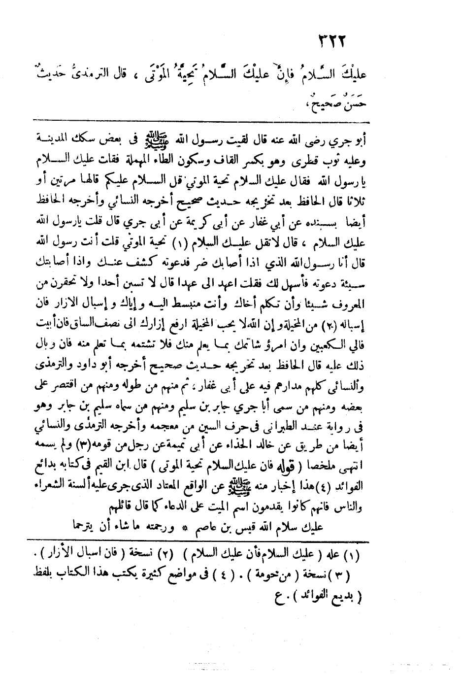عَلَيكَ السَّلامُ فإنْ عَلَيْكَ السلامُ تحيَّةُ المَوْتَى" قال الترمذي: حديث حسن صحيح.