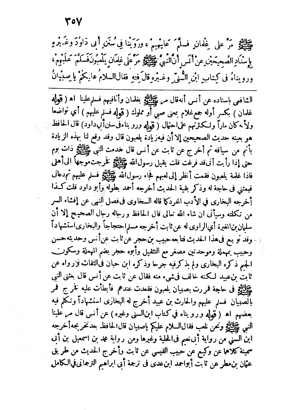 وروينا في سنن أبي داود وغيره بإسناد الصحيحين عن أنس "أن النبي -صلى الله عليه وسلم- مرَّ على غلمان يلعبون فسلَّم عليهم" ورويناه في كتاب ابن السني وغيره، قال فيه "فقال: السلامُ عَلَيكُمْ يا صِبْيانُ".