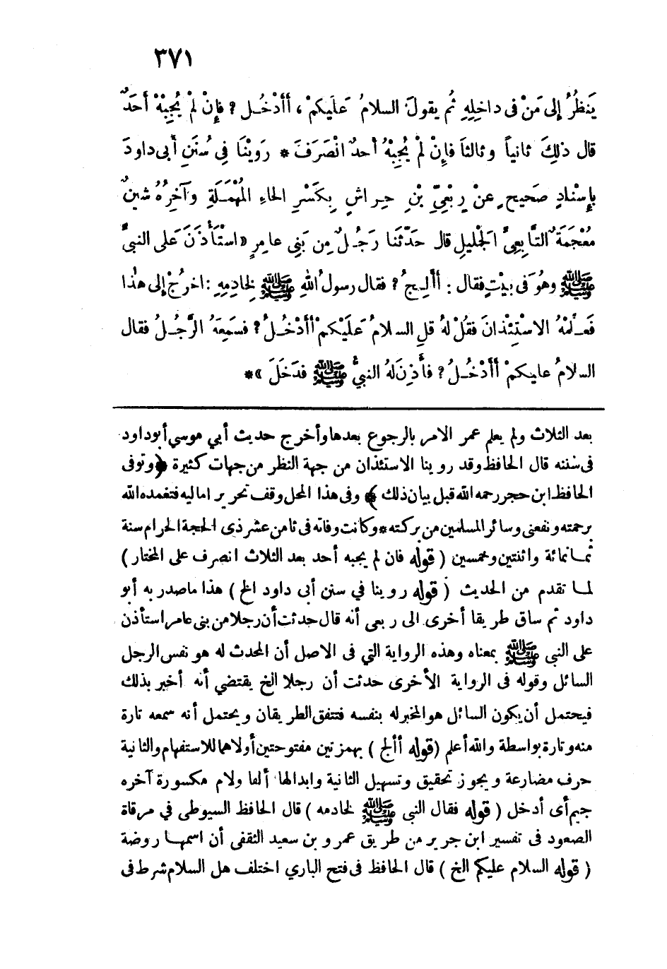 بعد الثلاث ولم يعلم عمر الأمر بالرجوع بعدها وأخرج حديث أبي موسى أبو داود في سننه قال الحافظ وقد روينا الاستئذان من جهة النظر من جهات كثيرة (وتوفي الحافظ ابن حجر رحمه الله قبل بيان ذلك) وفي هذا المحل وقف تحرير أماليه فتغمده الله برحمته ونفعني وسائر المسلمين من بركته.