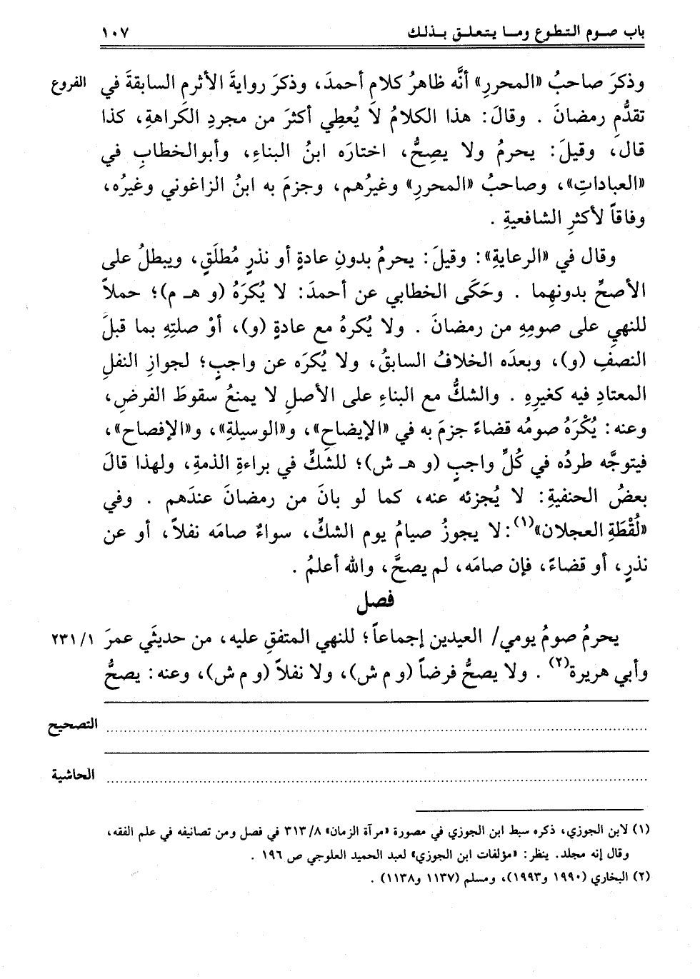 فَصْلٌ: يَحْرُمُ صَوْمُ يَوْمَيْ الْعِيدَيْنِ