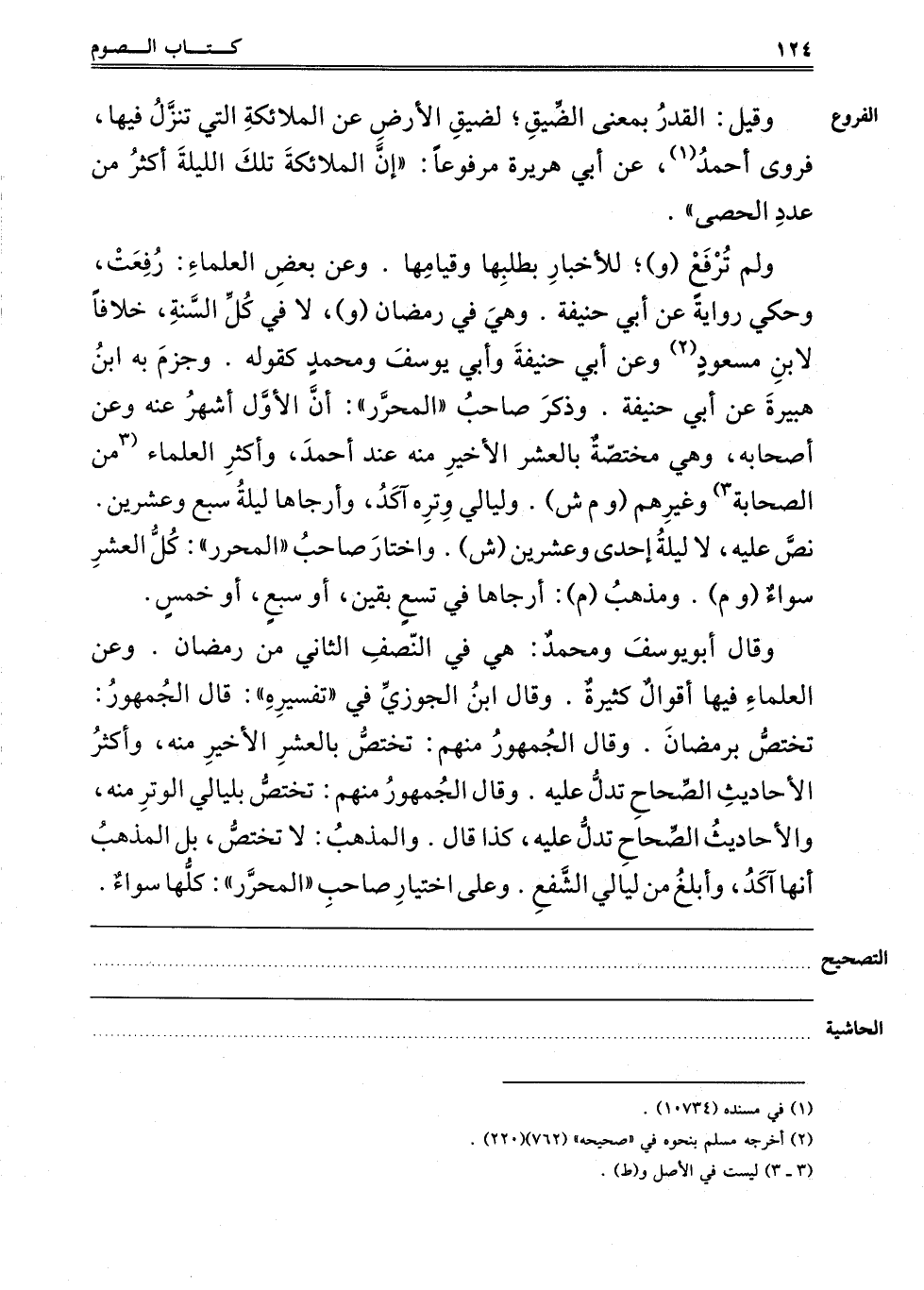 وَلَمْ تُرْفَعْ "وَ" لِلْأَخْبَارِ بِطَلَبِهَا وَقِيَامِهَا. وَعَنْ بَعْضِ الْعُلَمَاءِ: رُفِعَتْ, وَحَكَى رِوَايَةً عَنْ أَبِي حَنِيفَةَ وَهِيَ فِي رَمَضَانَ "وَ" لَا فِي كُلِّ السَّنَةِ, خِلَافًا لِابْنِ مَسْعُودٍ2, وَعَنْ أَبِي حَنِيفَةَ وَأَبِي يُوسُفَ وَمُحَمَّدٍ كَقَوْلِهِ, وَجَزَمَ بِهِ ابْنُ هُبَيْرَةَ عَنْ أَبِي حَنِيفَةَ, وَذَكَرَ صَاحِبُ الْمُحَرَّرِ أَنَّ الْأَوَّلَ أَشْهَرُ عَنْهُ وَعَنْ أَصْحَابِهِ, وَهِيَ مُخْتَصَّةٌ بِالْعَشْرِ الْأَخِيرِ مِنْهُ, عِنْدَ أَحْمَدَ وَأَكْثَرُ الْعُلَمَاءِ 3مِنْ الصَّحَابَةِ3 وَغَيْرِهِمْ "وم ش" وَلَيَالِي وِتْرِهِ آكَدُ, وَأَرْجَاهَا لَيْلَةَ سَبْعٍ وَعِشْرِينَ, نَصَّ عَلَيْهِ, لَا لَيْلَةَ إحْدَى وَعِشْرِينَ "ش" وَاخْتَارَهُ صَاحِبُ الْمُحَرَّرِ كُلُّ الْعَشْرِ سَوَاءٌ "م وَ" وَمَذْهَبُ "م" أَرْجَاهَا فِي تِسْعٍ بَقِينَ أَوْ سَبْعٍ أَوْ خَمْسٍ.