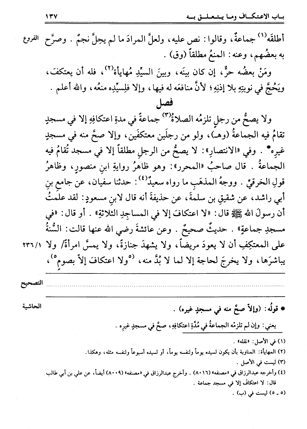 4 وأخرجه عبد الرزاق في مصنفه "8016" وأخرجه عبد الرزاق في مصنفه "8009" أيضا عن علي ين أبي طالب قال: لا اعتكاف إلا في مسجد جماعة.