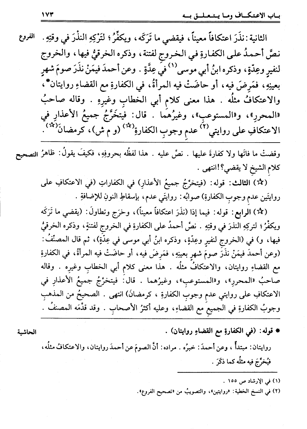 "الثَّالِثُ" قَوْلُهُ: "فَيَتَخَرَّجُ جَمِيعُ الْأَعْذَارِ فِي الْكَفَّارَاتِ فِي الِاعْتِكَافِ عَلَى رِوَايَتَيْنِ عَدَمُ وُجُوبِ الْكَفَّارَةِ" صَوَابُهُ رِوَايَتَيْ عَدَمِ, بِإِسْقَاطِ النُّونِ لِلْإِضَافَةِ.
