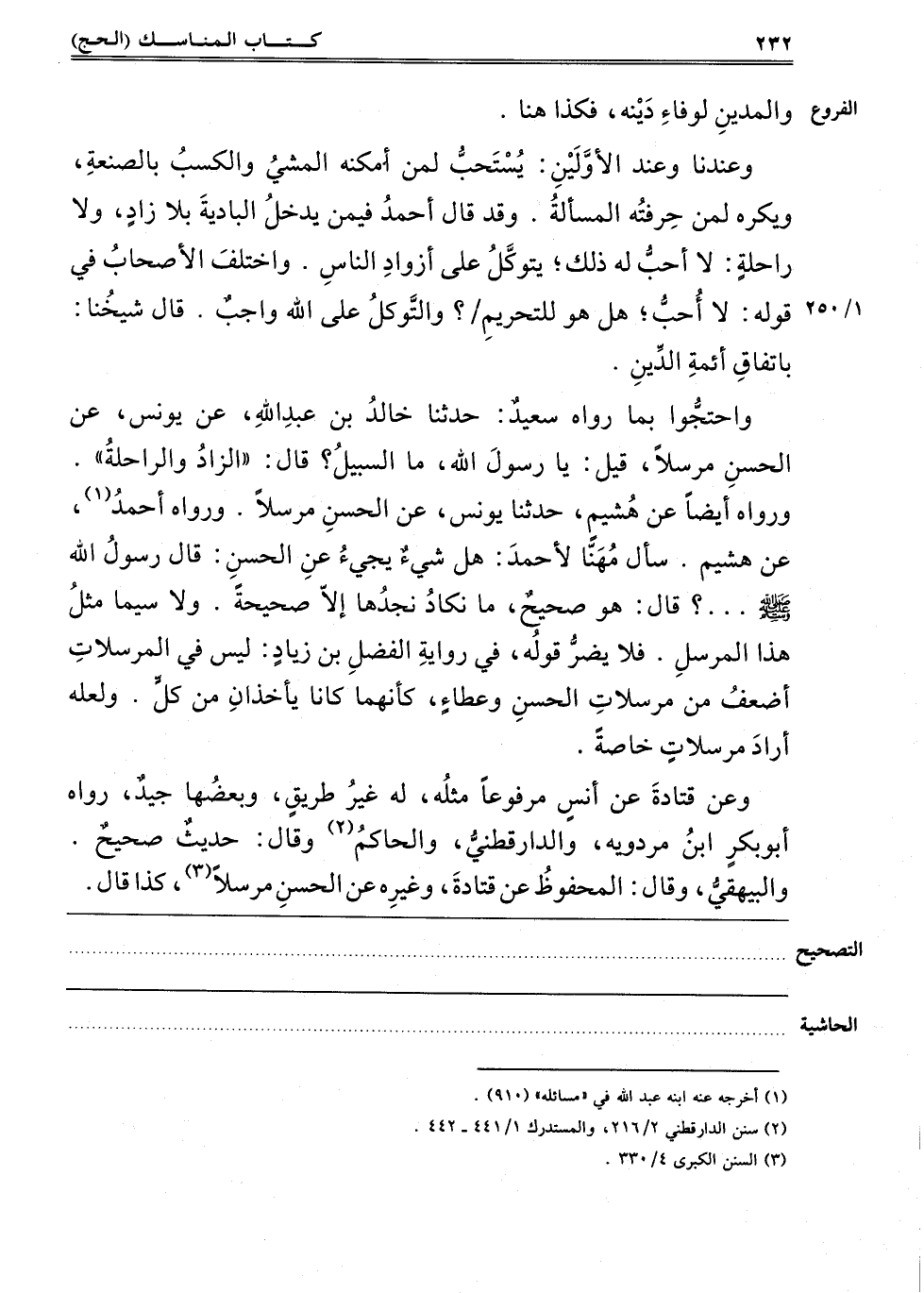 وَاحْتَجُّوا بِمَا رَوَاهُ سَعِيدٌ: حَدَّثَنَا خَالِدُ بْنُ عَبْدِ اللَّهِ عَنْ يُونُسَ عَنْ الْحَسَنِ مُرْسَلًا قِيلَ: يَا رسول الله, ما السبيل؟ قال: "لزاد وَالرَّاحِلَةُ" وَرَوَاهُ أَيْضًا عَنْ هُشَيْمٍ حَدَّثَنَا يُونُسُ عَنْ الْحَسَنِ مُرْسَلًا, وَرَوَاهُ أَحْمَدُ1 عَنْ هُشَيْمٍ, سَأَلَ مُهَنَّا أَحْمَدَ: هَلْ شَيْءٌ يَجِيءُ عَنْ الْحَسَنِ قَالَ رَسُولُ اللَّهِ صَلَّى اللَّهُ عَلَيْهِ وَسَلَّمَ؟ قَالَ: هُوَ صَحِيحٌ مَا نَكَادُ نَجِدُهَا إلَّا صَحِيحَةً وَلَا سِيَّمَا مِثْلَ هَذَا الْمُرْسَلِ, فَلَا يَضُرُّ قَوْلُهُ فِي رِوَايَةِ الْفَضْلِ بْنِ زِيَادٍ: لَيْسَ فِي الْمُرْسَلَاتِ أَضْعَفُ مِنْ مُرْسَلَاتِ الْحَسَنِ وَعَطَاءٍ, كَأَنَّهُمَا كَانَا يَأْخُذَانِ مِنْ كُلٍّ, ولعله أراد مرسلات خاصة.