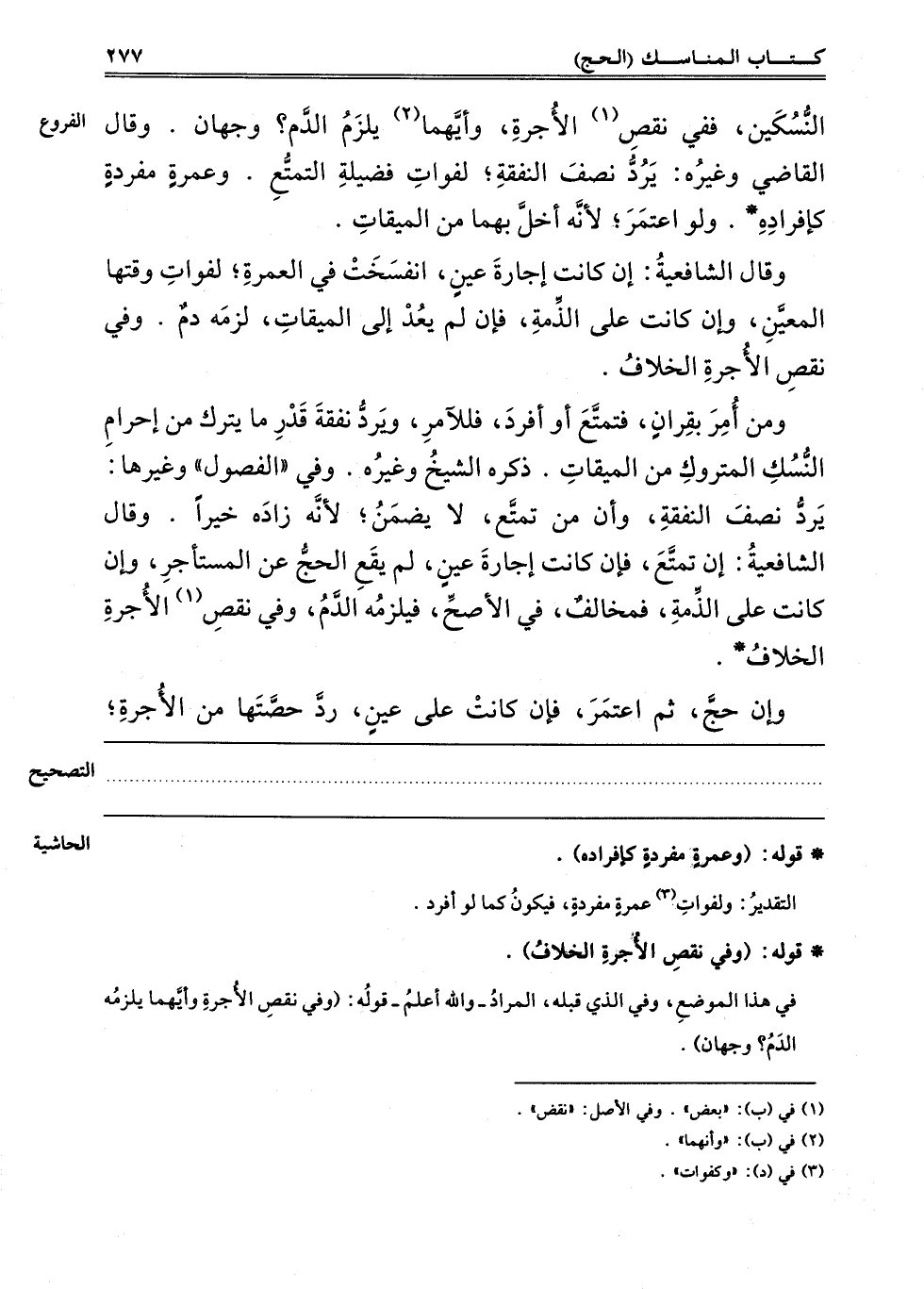 النُّسُكَيْنِ فَفِي نَقْصِ1 الْأُجْرَةِ وَأَيِّهِمَا2 يَلْزَمُ الدَّمُ وَجْهَانِ. وَقَالَ الْقَاضِي وَغَيْرُهُ: يَرُدُّ نِصْفَ النَّفَقَةِ, لِفَوَاتِ فَضِيلَةِ التَّمَتُّعِ. وَعُمْرَةٌ مُفْرَدَةٌ كَإِفْرَادِهِ وَلَوْ اعْتَمَرَ, لِأَنَّهُ أَخَلَّ بِهَا مِنْ الْمِيقَاتِ.