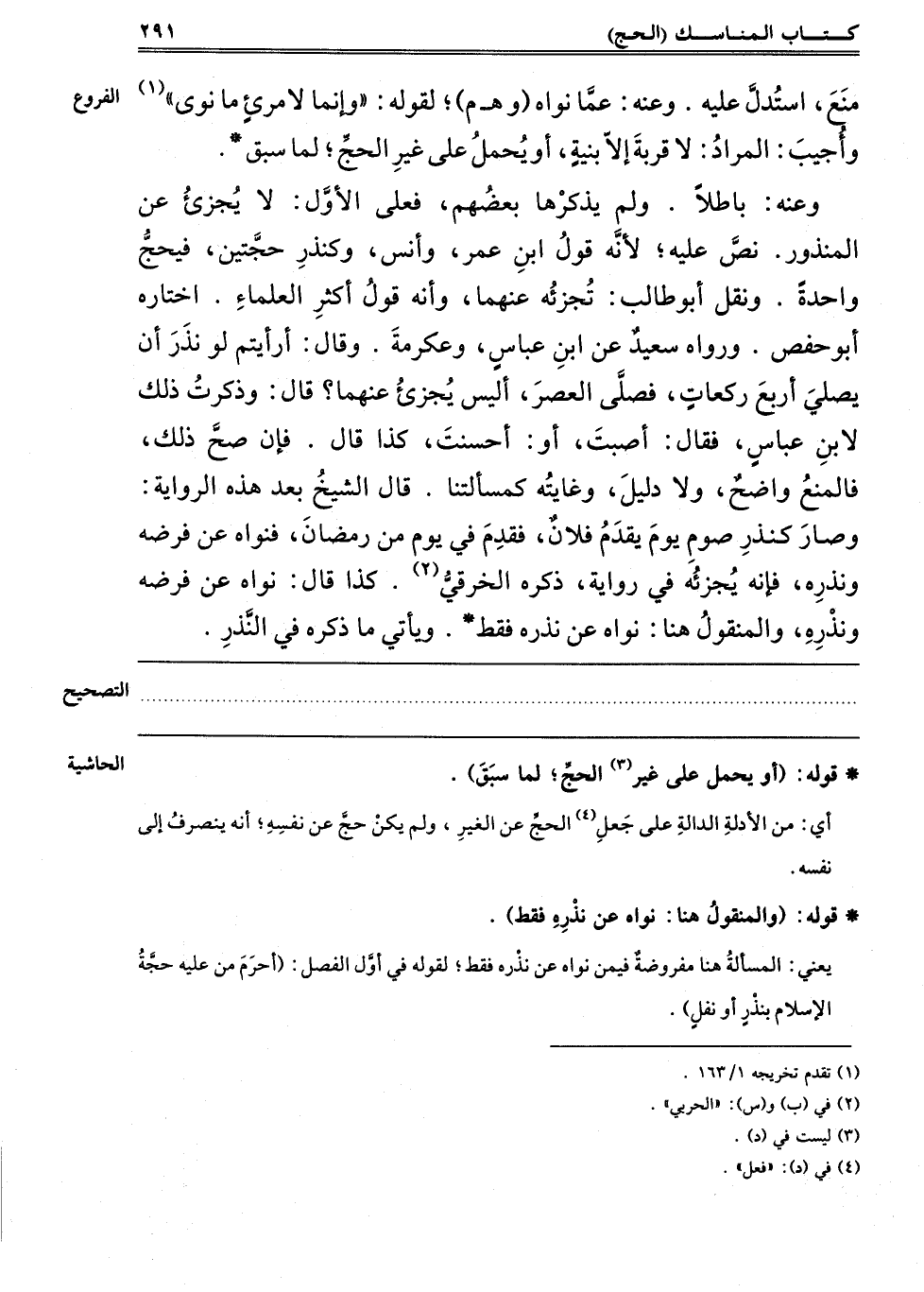 مَنَعَ اُسْتُدِلَّ عَلَيْهِ. وَعَنْهُ: عَمَّا نَوَاهُ "وهـ م" لِقَوْلِهِ "وَإِنَّمَا لِامْرِئٍ مَا نَوَى" 1 وَأُجِيبُ: الْمُرَادُ: لَا قُرْبَةَ إلَّا بِنِيَّةٍ, أَوْ يُحْمَلُ عَلَى غَيْرِ الْحَجِّ, لِمَا سَبَقَ.