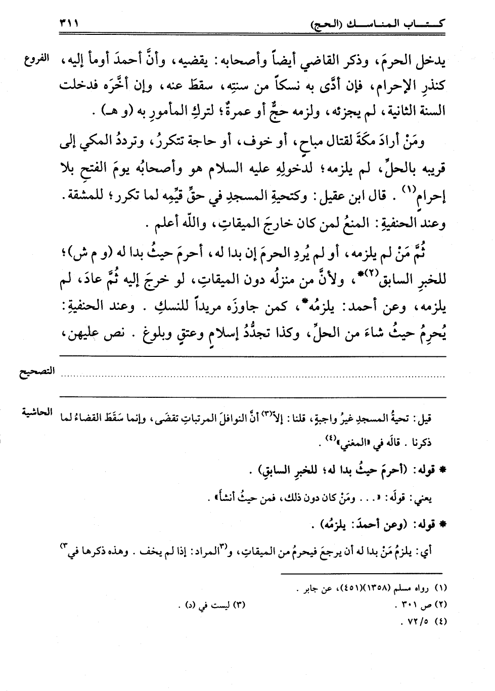 وَمَنْ أَرَادَ مَكَّةَ لِقِتَالٍ مُبَاحٍ أَوْ خَوْفٍ أَوْ حَاجَةٍ تُكَرَّرُ, وَتَرَدَّدَ الْمَكِّيُّ إلَى قَرِيبِهِ بِالْحِلِّ لَمْ يَلْزَمْهُ, لِدُخُولِهِ عَلَيْهِ السَّلَامُ هُوَ وَأَصْحَابُهُ يَوْمَ الْفَتْحِ بِلَا إحْرَامٍ1, قَالَ ابْنُ عَقِيلٍ, وَكَتَحِيَّةِ الْمَسْجِدِ فِي حَقٍّ قَيَّمَهُ لِمَا تَكَرَّرَ لِلْمَشَقَّةِ, وَعِنْدَ الْحَنَفِيَّةِ الْمَنْعُ لِمَنْ كَانَ خَارِجَ الْمِيقَاتِ, وَاَللَّهُ أَعْلَمُ.