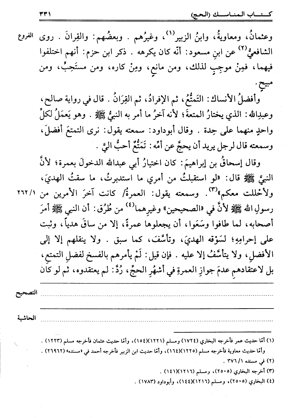 1 أما حديث عمر فأخرجه البخاري "1724" ومسلم "1221" "154" وأما حديث عثمان فأخرجه مسلم "1223" وأما حديث معاوية فأخرجه مسلم "1225" "164" وأما حديث ابن الزبير فأخرجه أحمد في مسنده "26962".