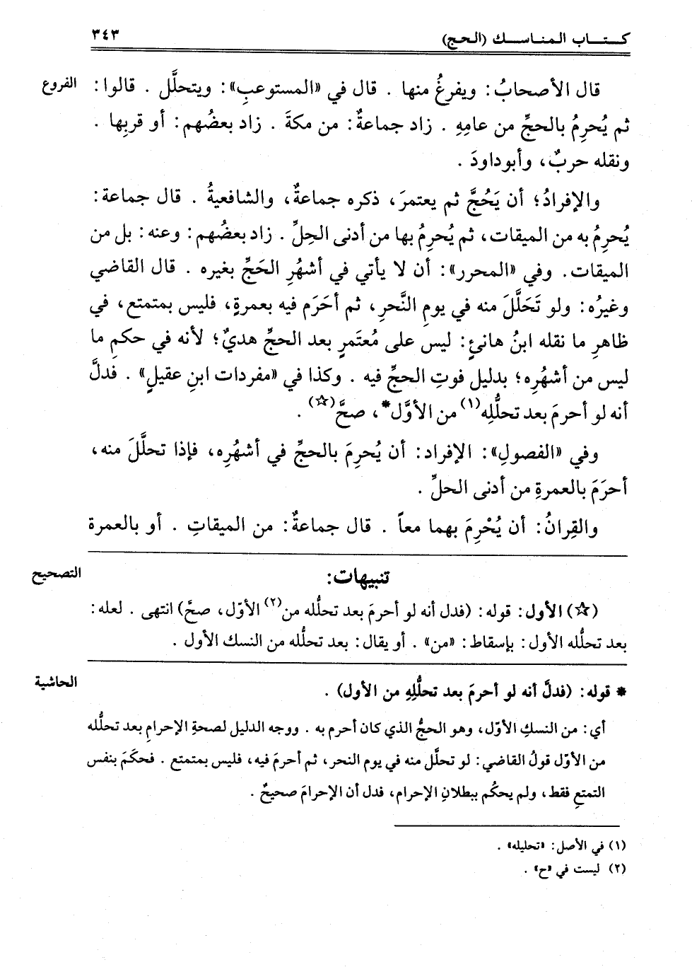 "الْأَوَّلُ" قَوْلُهُ: فَدَلَّ أَنَّهُ لَوْ أَحْرَمَ بَعْدَ تَحَلُّلِهِ مِنْ2 الْأَوَّلِ صَحَّ, انْتَهَى, لَعَلَّهُ "بَعْدَ تَحَلُّلِهِ الْأَوَّلِ" بِإِسْقَاطٍ "مِنْ" أَوْ يُقَالَ: وتقديره بعد تحلله من النسك الأول