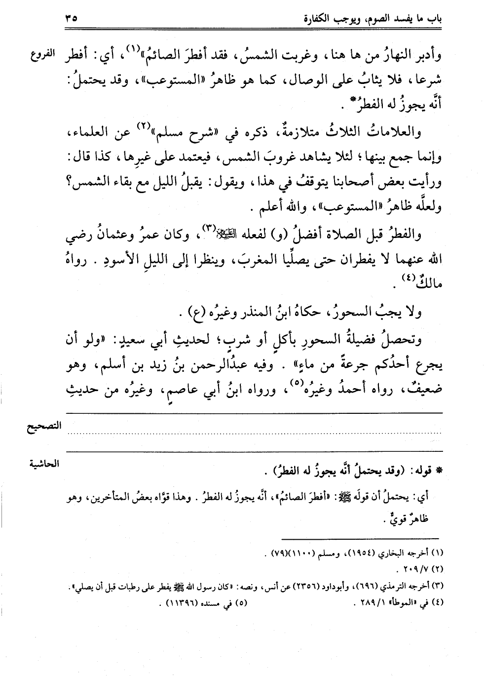 3 أخرجه الترمذي "696" وأبو داود "2356" عن أنس ونصه: كَانَ رَسُولُ اللَّهِ صَلَّى اللَّهُ عَلَيْهِ وَسَلَّمَ يفطر على رطبات قبل أن يصلي.