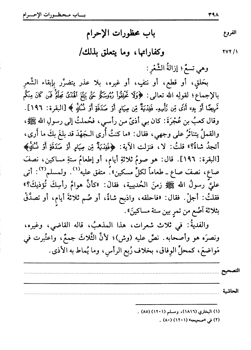 باب محظورات الإحرام وكفارات وما يتعلق بذلك