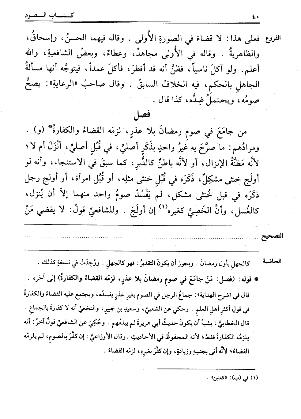 فَصْلٌ: مَنْ جَامَعَ فِي صَوْمِ رَمَضَانَ بِلَا عُذْرٍ
