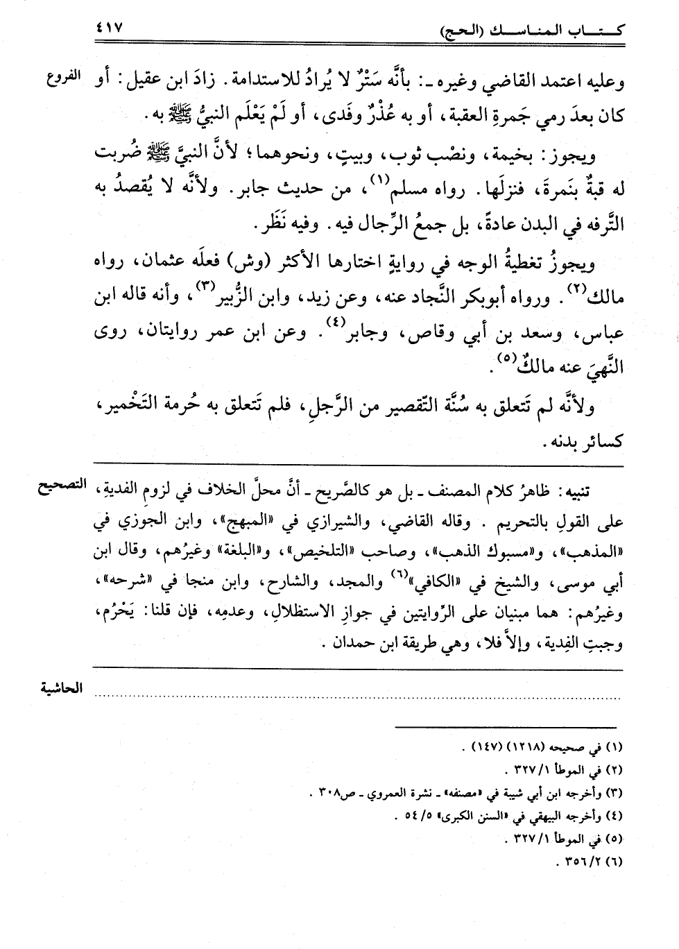 وَيَجُوزُ تغطية الوجه, في رواية اختارها الأكثر "وش" فَعَلَهُ عُثْمَانُ, رَوَاهُ مَالِكٌ2, وَرَوَاهُ أَبُو بَكْرٍ النَّجَّادُ عَنْهُ, وَعَنْ زَيْدٍ وَابْنِ الزُّبَيْرِ3, وَأَنَّهُ قَالَهُ ابْنُ عَبَّاسٍ وَسَعْدُ بْنُ أَبِي وَقَّاصٍ وَجَابِرٌ4, وَعَنْ ابْنِ عُمَرَ رِوَايَتَانِ, رَوَى النَّهْيَ عَنْهُ مَالِكٌ5.
