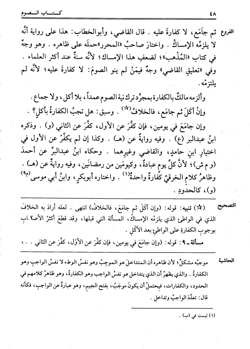 ـــــــــــــــــــــــــــــQ"تَنْبِيهٌ" قَوْلُهُ: وَإِنْ أَكَلَ ثُمَّ جَامَعَ فَالْخِلَافُ, انْتَهَى. لَعَلَّهُ أَرَادَ بِهِ الْخِلَافَ الَّذِي فِي الْوَطْءِ الَّذِي يَلْزَمُهُ الْإِمْسَاكُ "فِي" الْمَسْأَلَةِ الَّتِي قَبْلَهَا, وَقَدْ قَطَعَ أَكْثَرُ الْأَصْحَابِ بِوُجُوبِ الْكَفَّارَةِ عَلَى الْوَاطِئِ بَعْدَ الْأَكْلِ.