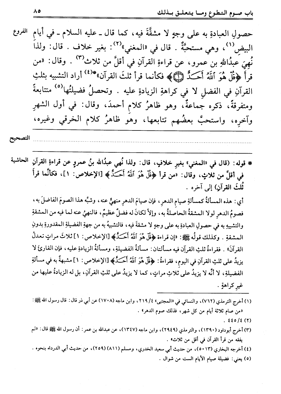 3 أخرجه أبو داود "1390" والترمذي "2949" وَابْنِ مَاجَهْ "1347" عَنْ عَبْدِ اللَّهِ بْنِ عُمَرَ إنَّ رَسُولَ اللَّهِ صَلَّى اللَّهُ عَلَيْهِ وَسَلَّمَ قال: "لم يفقه من قرأ القرآن في أقل من ثلاث".